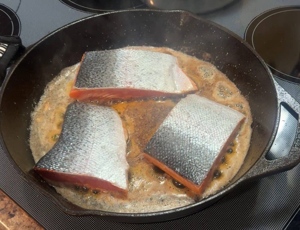 Return the steelhead trout to the skillet. Spoon the sauce over the top and let it warm through on low heat for 1-2 minutes.